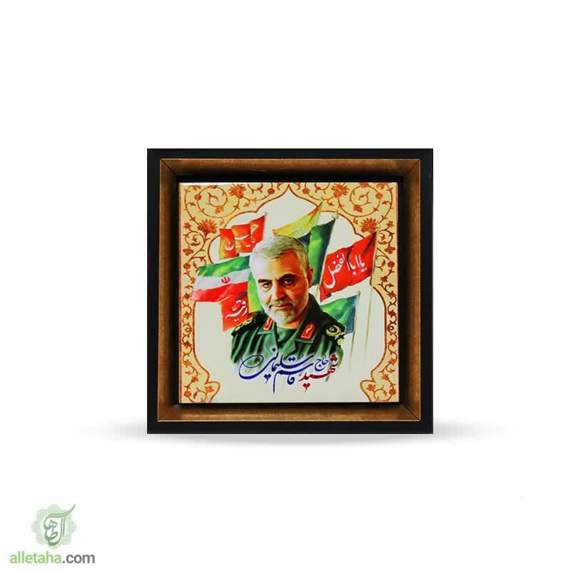 قاب سنگی دور طلایی طرح سردار شهید سلیمانی