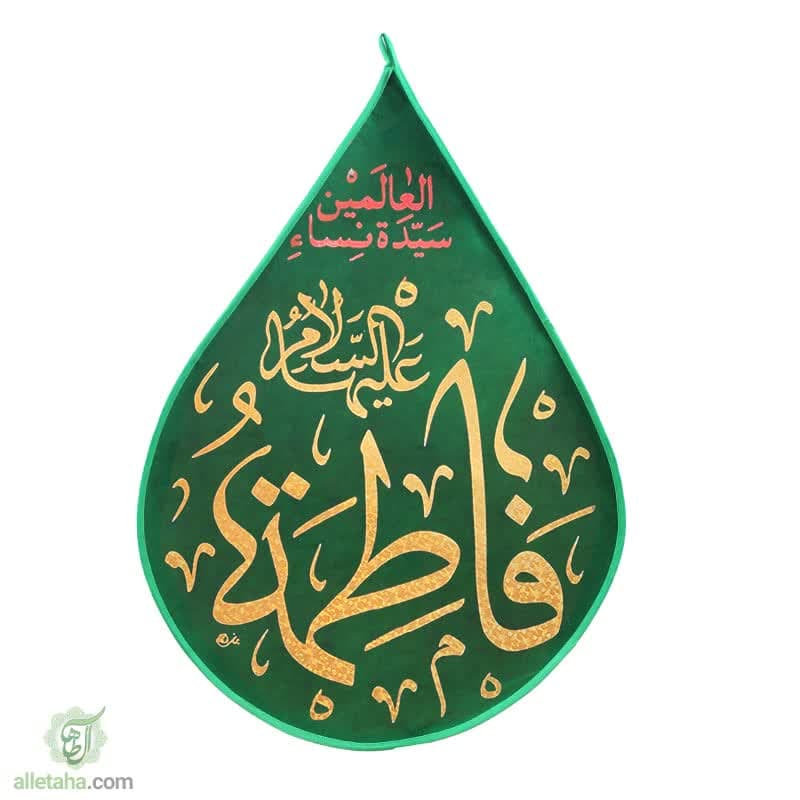 It is one of the tear flags of Al Taha cultural and religious store. The top material of this flag is made of velvet, which is decorated with the name of Ahl al-Bayt. The dimensions of this tear flag are 50 x 70 cm.