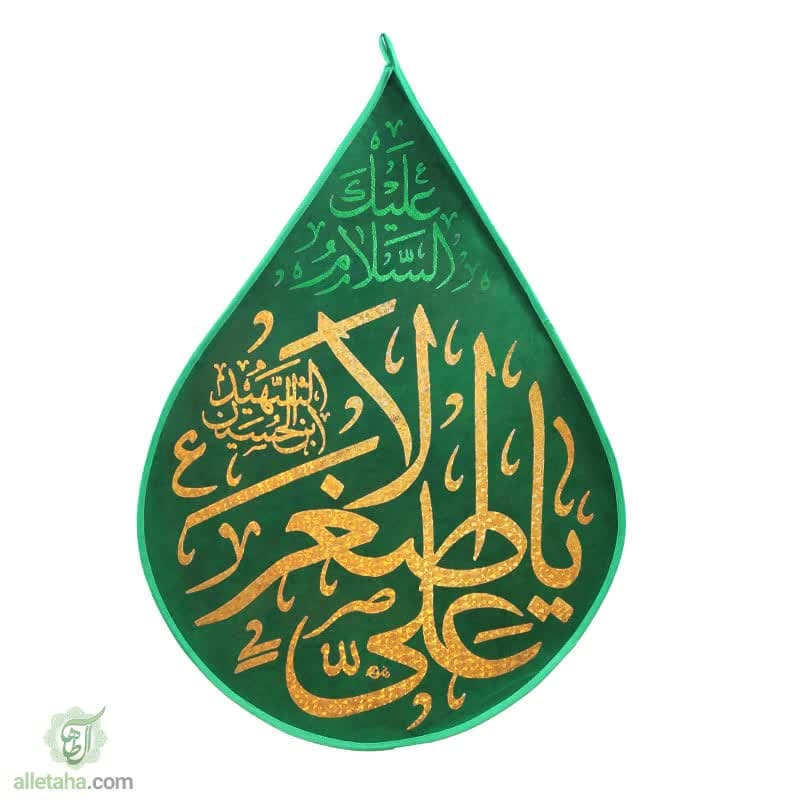 It is one of the tear flags of Al Taha cultural and religious store. The top material of this flag is made of velvet, which is decorated with the name of Ahl al-Bayt. The dimensions of this tear flag are 50 x 70 cm.