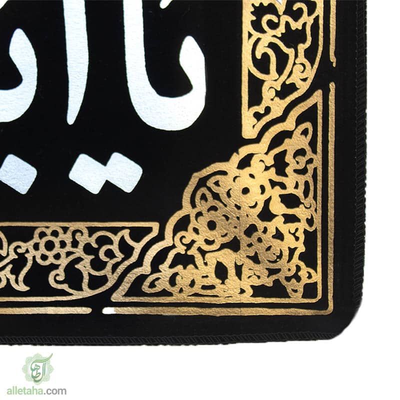 - نام اباعبدلله الحسین به زیبایی در وسط این پرچم به رنگ نقره ای و حاشیه دور آن به رنگ طلایی، چاپ شده است.