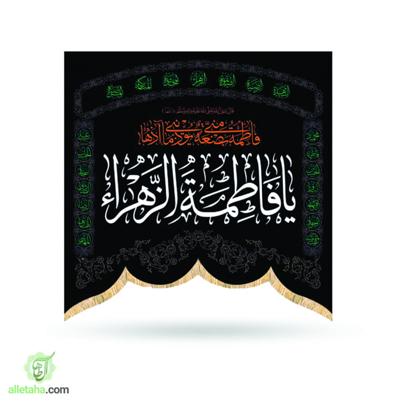 ابعاد این پرچم 140*140 سانتی متر است مناسب برای سردر هیئت ها ، پشت منبر و ایستگاه های صلواتی در فاطمیه است.
