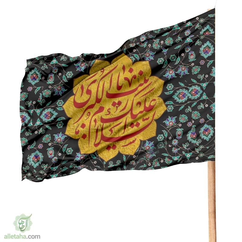 زمینه پرچم به رنگ مشکی بوده که مناسب برای ایام شهادت و ماه های محرم و صفر می باشد.