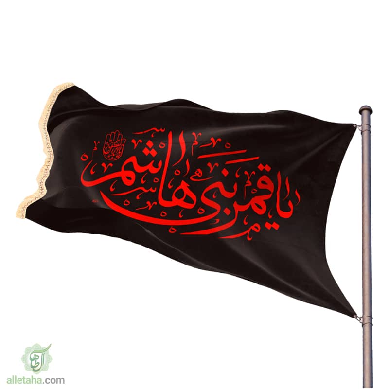 For mourning ceremonies, Muharram processions, mosques, delegations, salutation stations, etc., Qamarbani Hashem 140*260 satin flag is the best offer of Al Taha cultural and religious store and Rahmani brand, which is installed on the wall and The hanging face is made of wood.