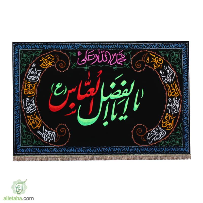در وسط پرچم عبارت ” یااباالفضل العباس ” با دو رنگ سبز پسته ای و قرمزدوخته شده است.