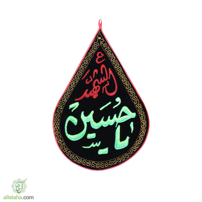 پرچم اشکی گلدوزی امام حسین70*50 از پرچم های فروشگاه فرهنگی و مذهبی آل طاها است که برای مراسم های عزاداری در ماه محرم طراحی و تولید شده است.