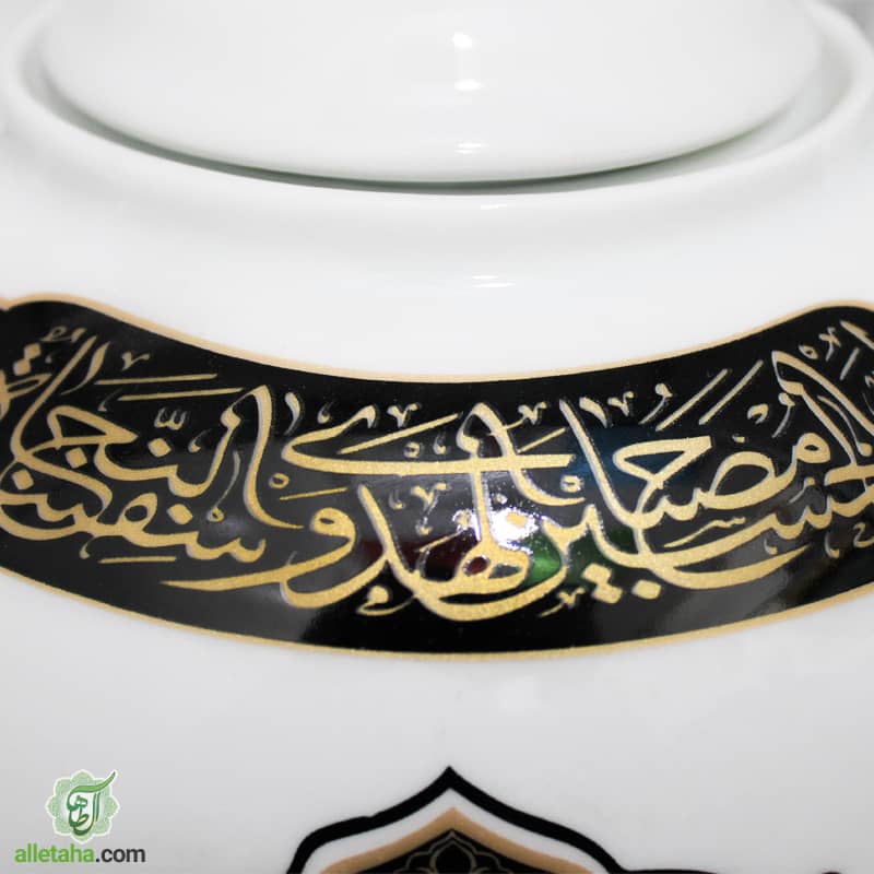چاپ روی قوری به صورت دو رو می باشد که در یک سمت نام اباعبدلله الحسین (ع) و در سمت دیگر نام ابالفضل العباس (ع) چاپ شده است.