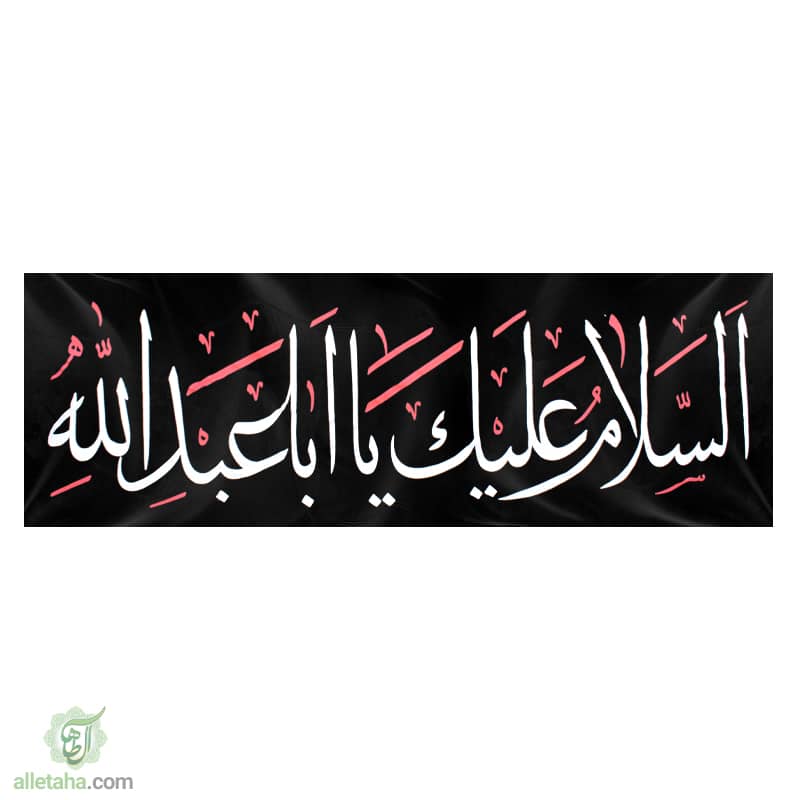 متن روی پرچم عبارت ” السلام علیک یااباعبدالله ” است که با رنگ سفید روی پارچه مشکی نوشته شده است.