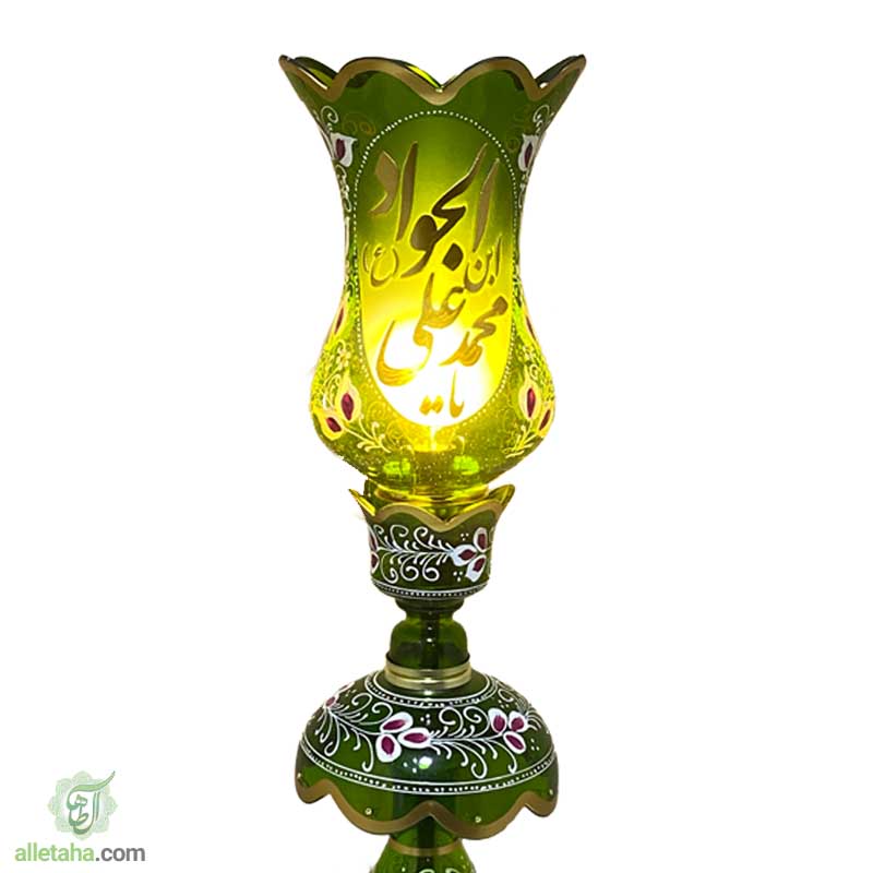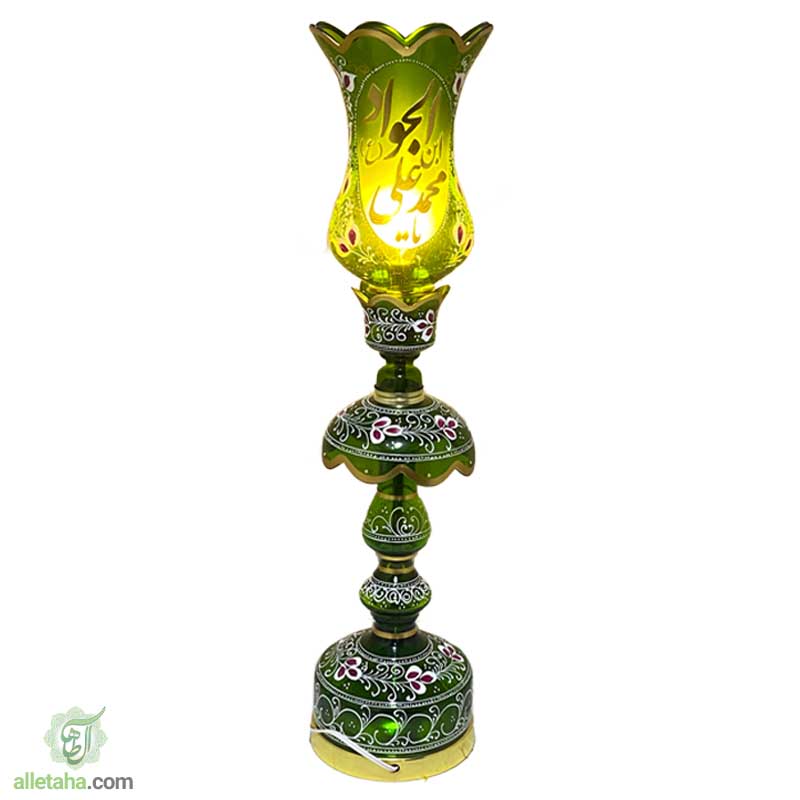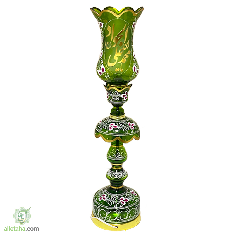 شمعدان لاله امام جواد سایز63 سانتی متر سبز رنگ قابلیت استفاده هم به صورت دکوری و هم به صورت کاربردی در مراسمات عزاداری, مجالس روضه, مساجد, منازل, هیئات, ادارات و … می باشد.