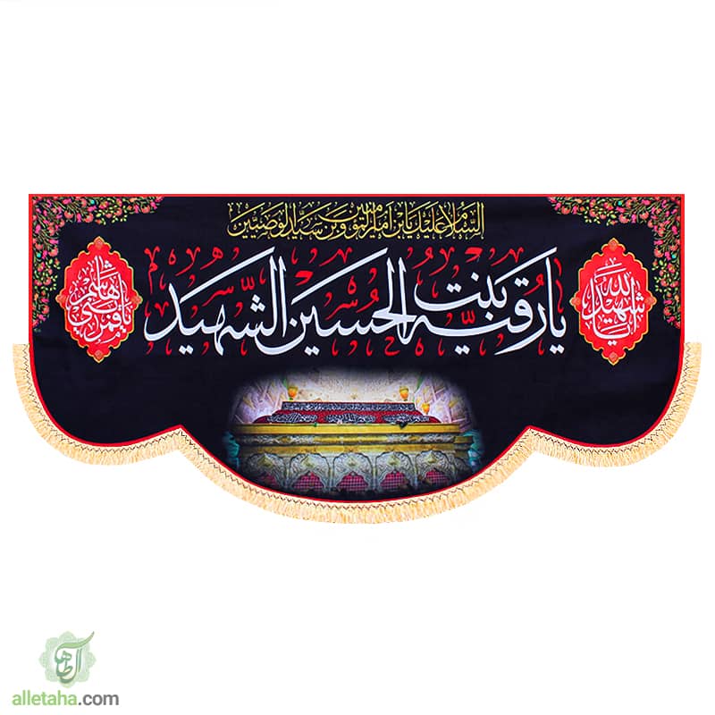 پرچم سابلیمیشن حضرت رقیه هلال دردوسایزکوچک وبزرگ جزو پرچم های محرمی فروشگاه فرهنگی و مذهبی آل طاها که از جنس مخمل مبلی است و از چاپ سابلی میشن برخوردار است.