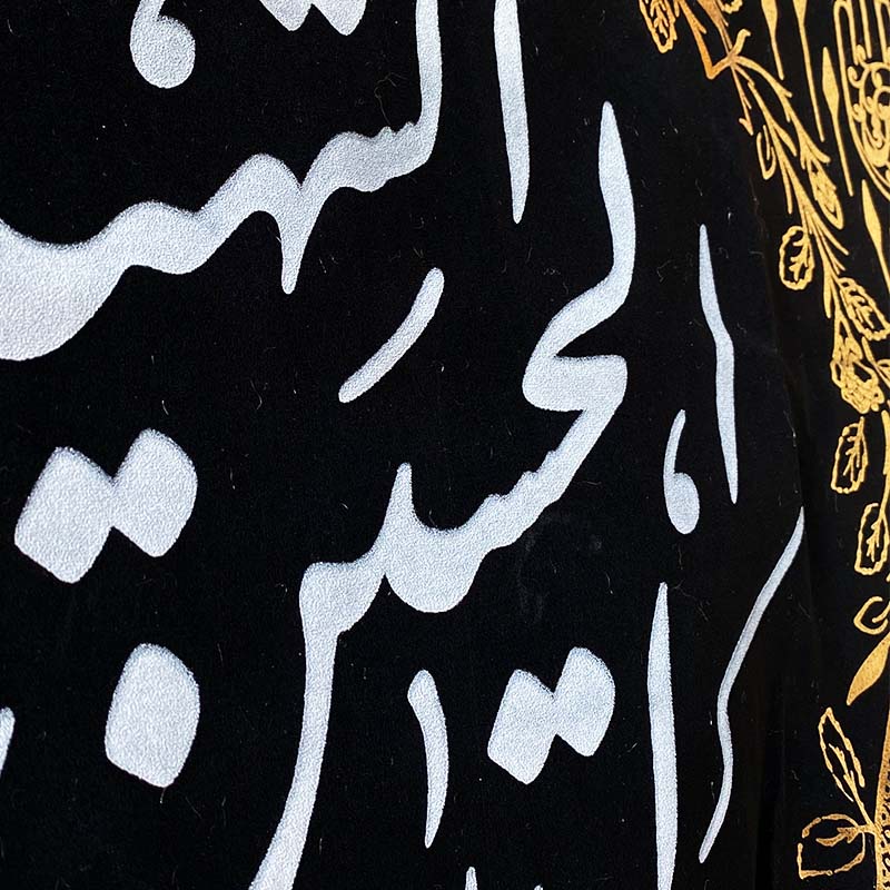 نام زیبای سردار شهیدان امام حسین (ع) با ظرافت تمام به صورت طلاکوب چاپ شده است.
