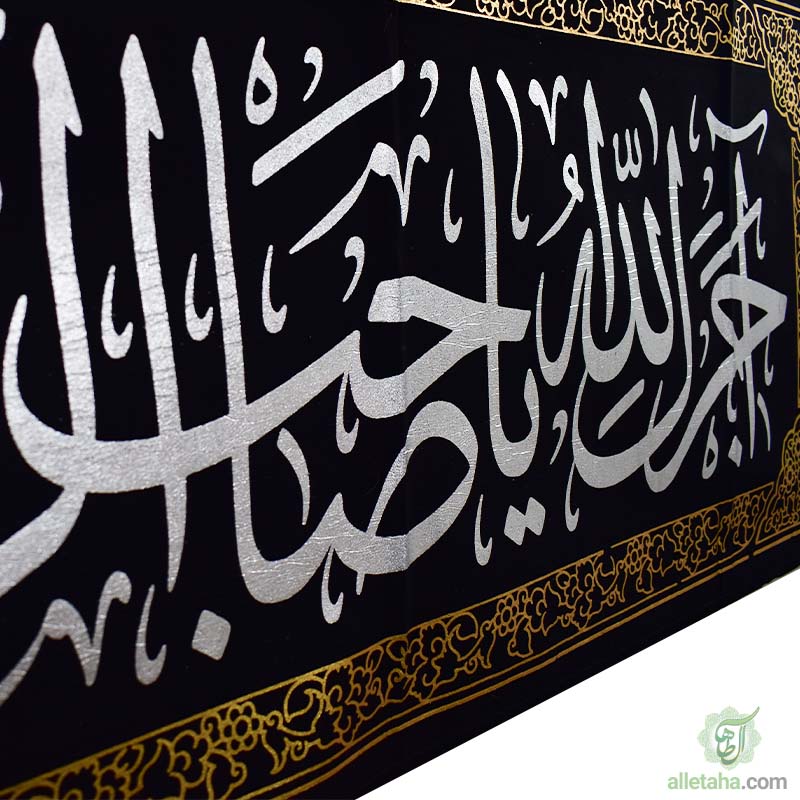 اگر در هنگام برگزاری مراسمات عزاداری در منازل به دنبال پرچم برای متبرک نمودن درب ورودی می باشید پیشنهاد فروشگاه فرهنگی و مذهبی آل طاها،سردری مخمل آجرک الله سایز110*45 می باشد.