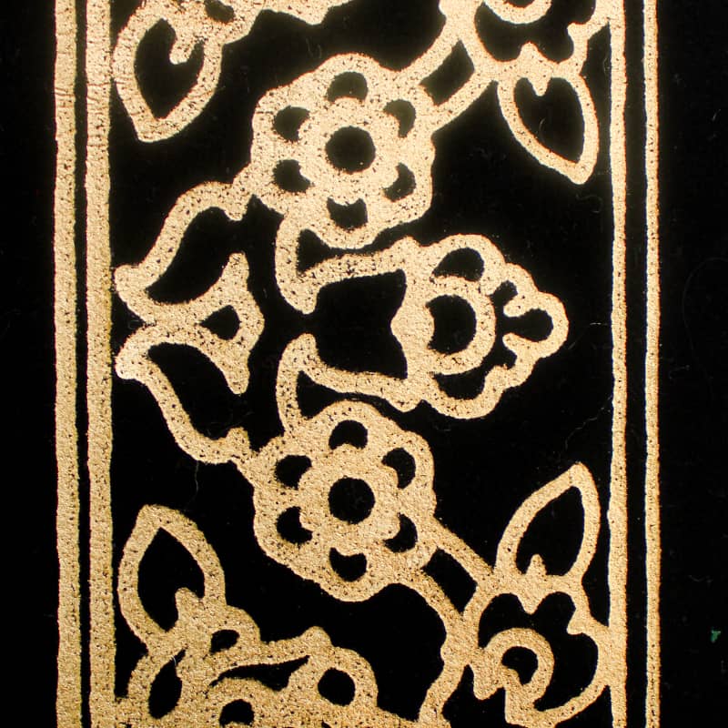 از نقطه قوت های مشترکی که در بین پرچم های مخمل با چاپ طلاکوب است حاشیه ریشه دوزی شده در پایین پرچم می باشد که جلوه دیگری به پرچم میدهد.