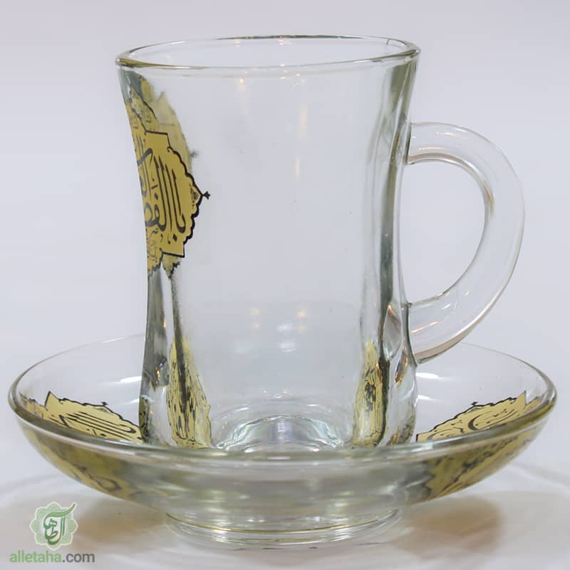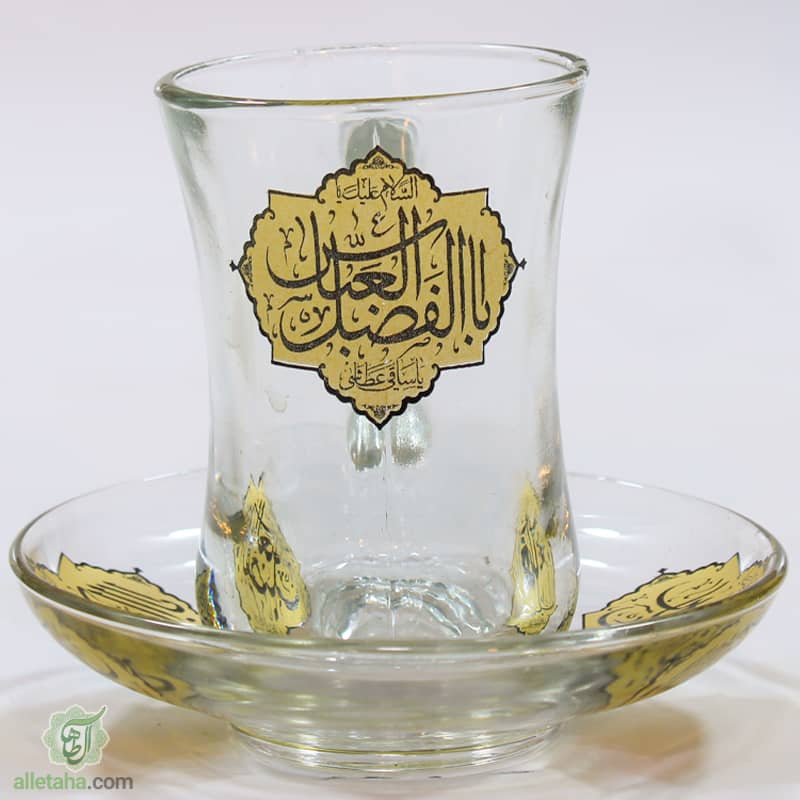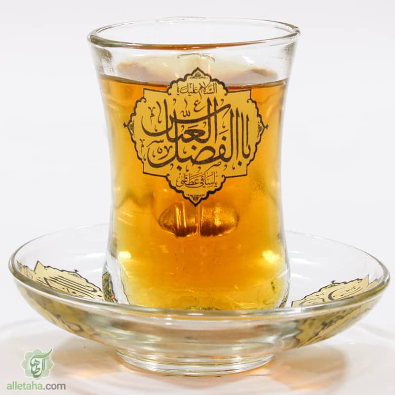 نام یا ابالفضل العباس با پس زمینه طلایی و نوشته مشکی در قسمت بالایی استکان چاپ شده است. نعلبکی ها نیز در دو طرف شان این نام زیبا دیده می شود.