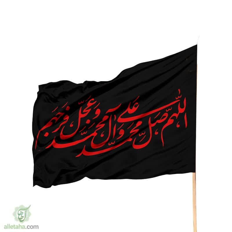 پرچم ساتن صلوات مشکی نوشته قرمز
