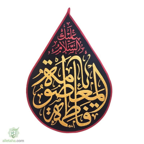 One of the most popular products of Al Taha cultural and religious collection is the series of teardrop flags of this collection. These flags are available in several types of embroidered tears, gold-plated tears, linen tears and sable mission tears. These flags are called teardrops because they look like tears. This model of teardrops that we are introducing to you is a gold-plated teardrop. The teardrops produced in the Al Taha collection have a very beautiful and attractive appearance. These teardrops bear the names of the 14 innocents and also the names of the holy ones such as Hazrat Abbas and Hazrat Zainab. And Masoomin, there is an ice cream pattern on it. This flag is the holy name of Hazrat Fatima Masoumeh (pbuh). To clean these flags, you can only use dusting and avoid washing them.